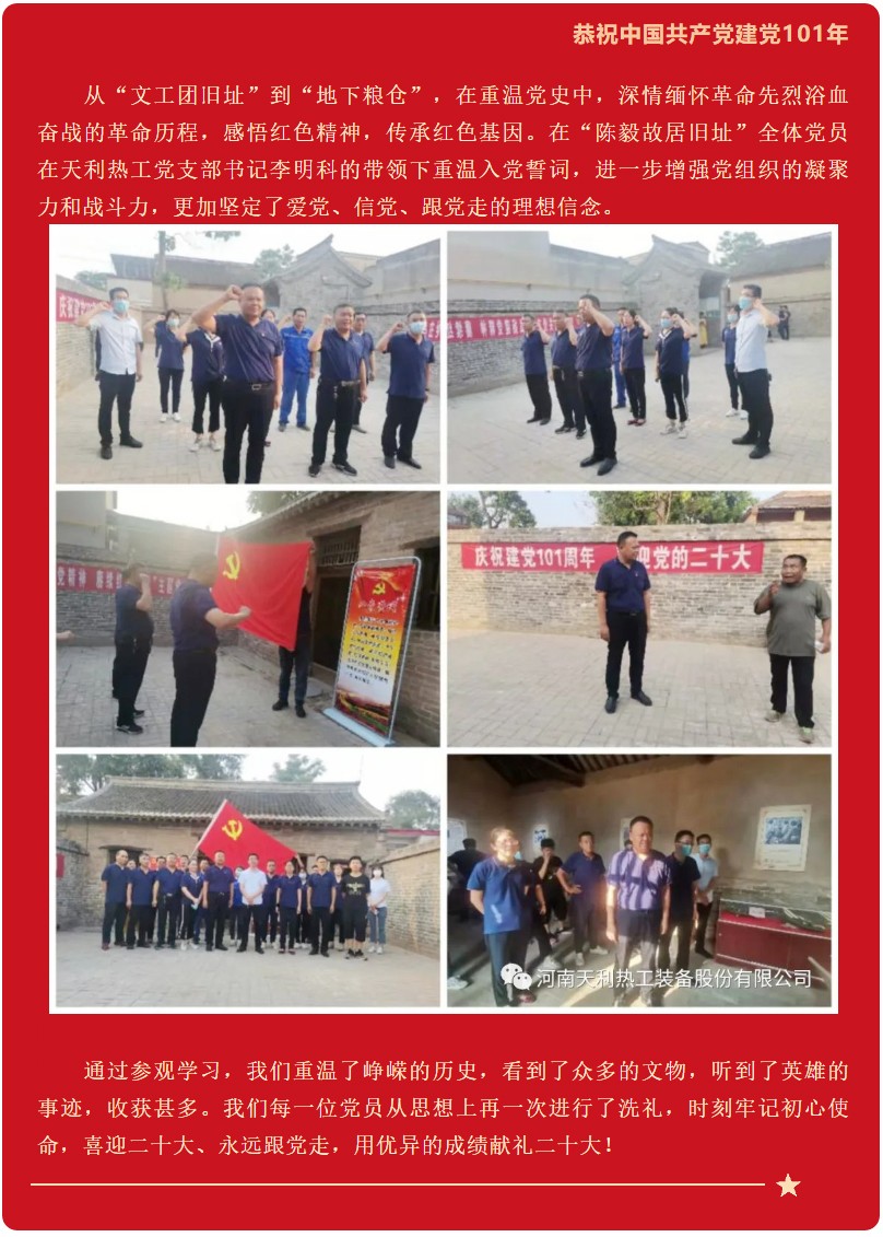 喜迎二十大,永遠(yuǎn)跟黨走——天利熱工“迎七一·踐初心
