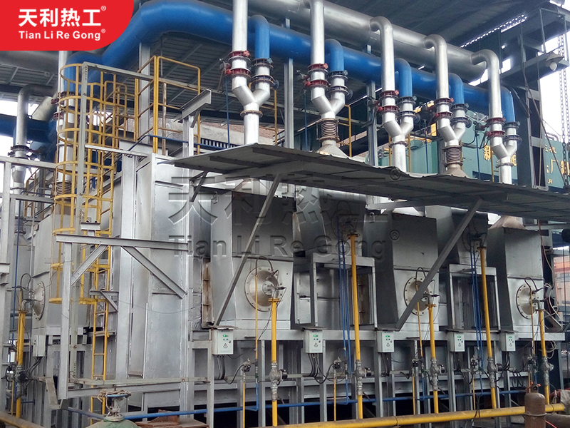 超低NOx排放燃氣爐主要由爐體、爐襯、爐門及爐門開啟機構、密封裝置、臺車及臺車行走機構、燃燒系統、天燃氣管路、空氣管路、排煙管路及電氣及自動控制系統等部分組成。